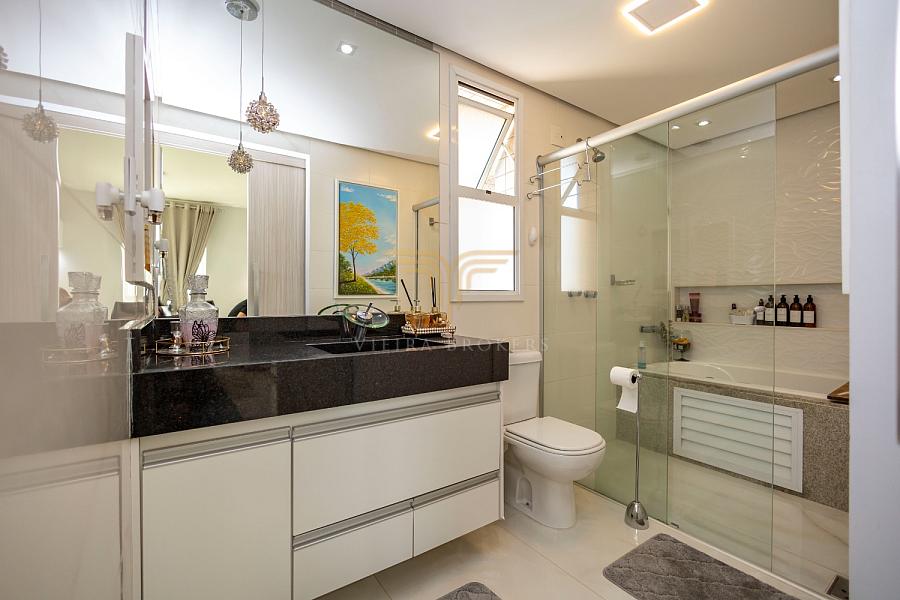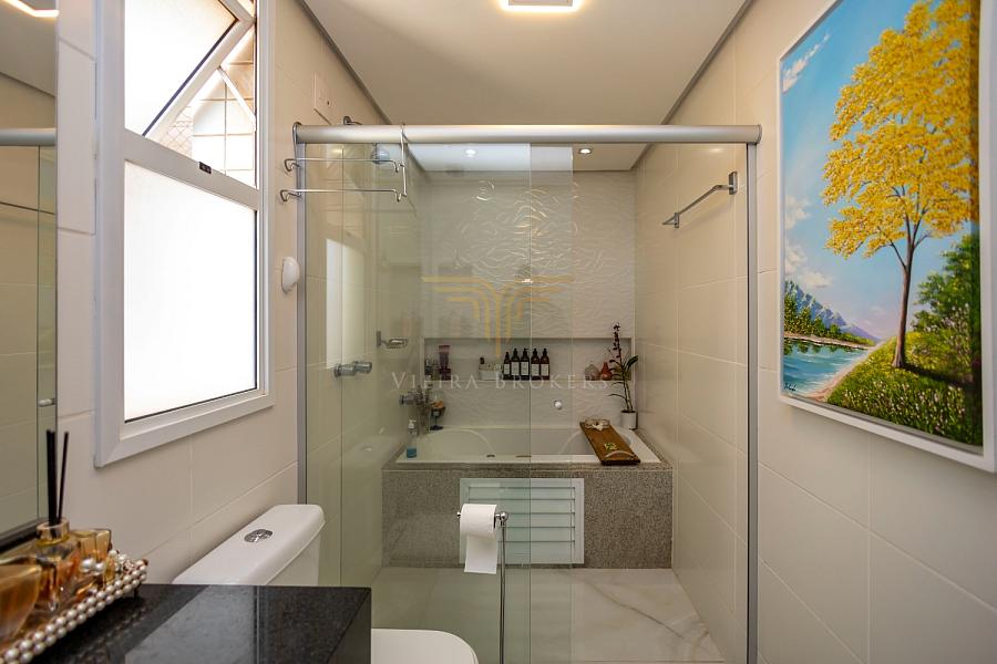 São 168 metros, 3 suítes, uma delas com closet e banheira,
