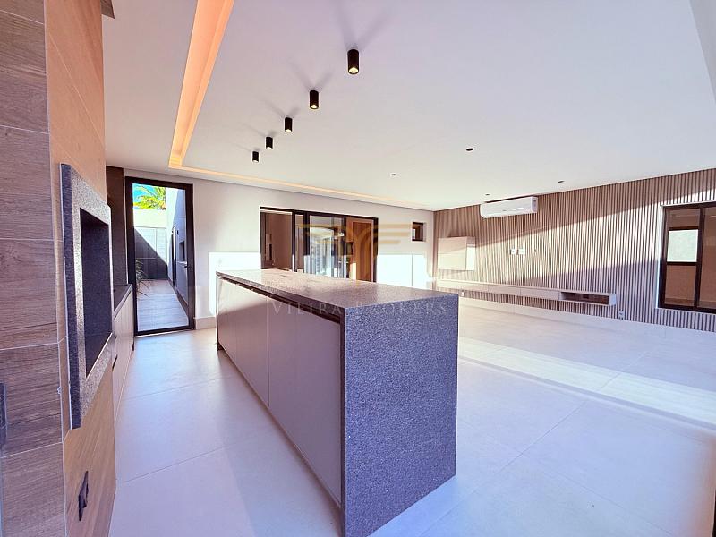-Cozinha completa com ilha, balcão em granito com armários, equipamentos  Brastemp(freezer, geladeira, fogão, coifa, forno elétrico, microondas e lava louças).